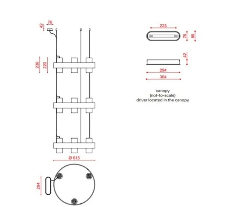 Dotée d’une source LED d’une puissance de 9x9W, dimmable en coupure de phase, de 1200 lumens et 2700K (blanc chaud), cette suspension offre un éclairage de qualité, réglable pour s’adapter à différentes ambiances. Elle est équipée d’un indice de protection IP40. La longueur du câble est de 1,25 mètre, ajoutant une touche d’élégance avec son revêtement noir. Rosace à décentraliser incluse. Driver inclus. Montage au plafond, en saillie.