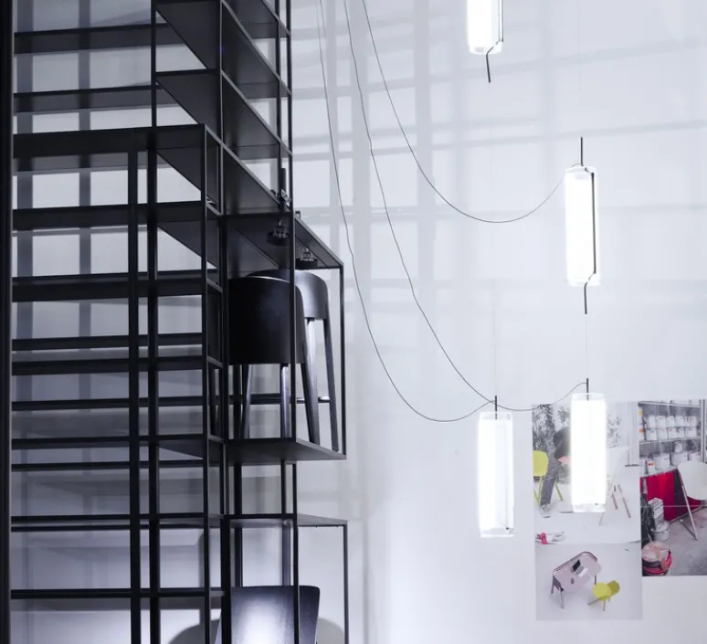 Voici la suspension Guise 2271 créée par le designer Stefan Diez de la maison espagnole Vibia ! Grâce à sa structure transparente en verre, elle possède un style très contemporain.