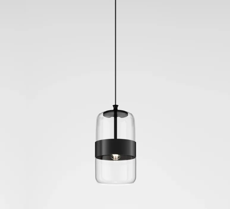 Ce luminaire unique présente un verre cristal transparent avec un anneau en cuivre ou noir mat, créant un contraste saisissant et mettant en valeur l’élégance du verre soufflé. La transparence du verre permet à la lumière de se diffuser de manière douce et uniforme dans l’espace, créant une atmosphère chaleureuse et accueillante.