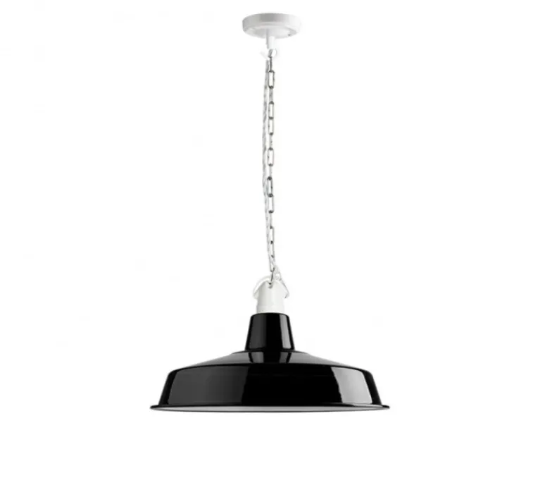 L’abat-jour en émail est disponible en plusieurs couleurs. La suspension Alexandre est conçue pour un usage intérieur uniquement.