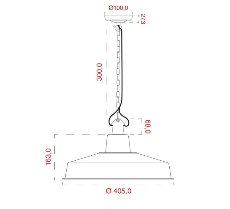 L’abat-jour en émail est disponible en plusieurs couleurs. La suspension Alexandre est conçue pour un usage intérieur uniquement.