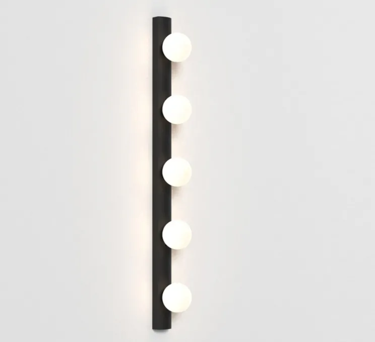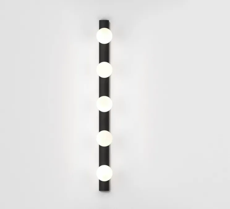 L’applique de salle de bain Cabaret 5 peut être posée à la verticale ou à l’horizontale. Elle mesure 70cm de long.
