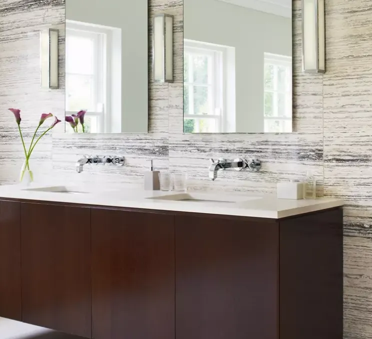 Ce luminaire est équipé d’une douille E14, nous vous recommandons deux ampoules LED 2700K de 7W. Installez-les par paire autour de votre miroir.