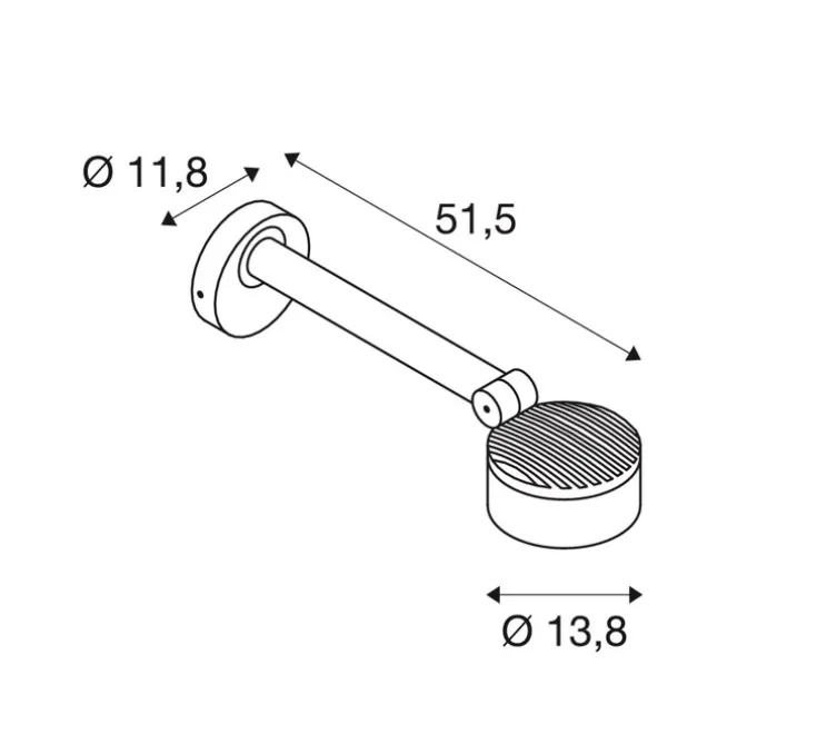 ESKINA D fait 13,8cm de diamètre et 51,5cm de hauteur. La source lumineuse est incluse (1x module LED, 14,5W, 1000lm, 3000K ou 4000K à configurer lors de l’installation, IRC>80).