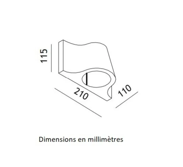 L’applique mesure 11,5 cm de hauteur, 21 cm de longueur et 11 cm de profondeur.