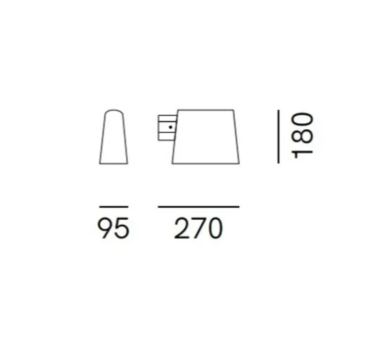 L’applique mesure 9,5cm de longueur et 18cm de hauteur. La source lumineuse n’est pas fournie. Nous recommandons une ampoule E27.