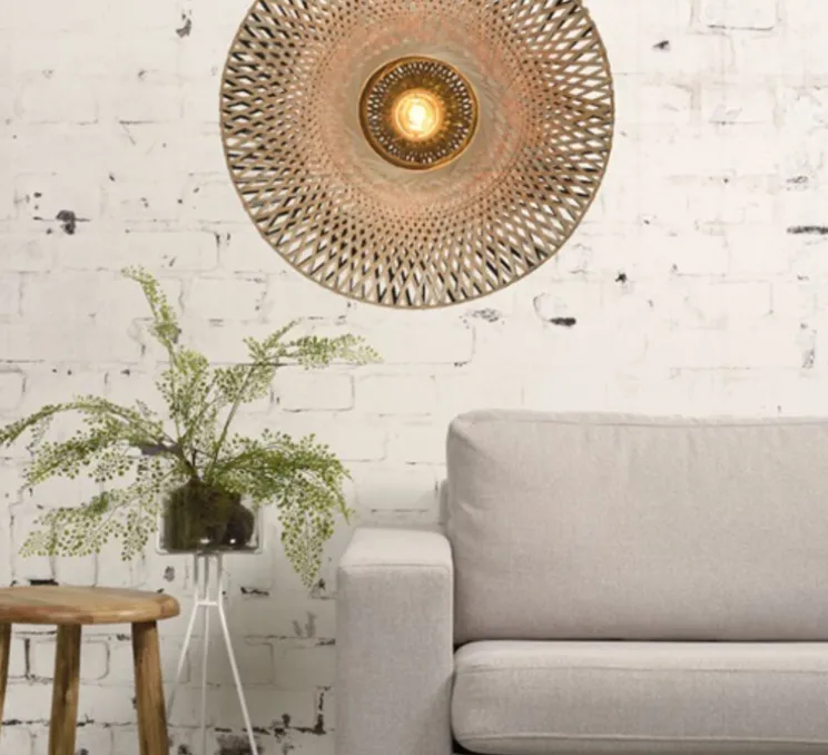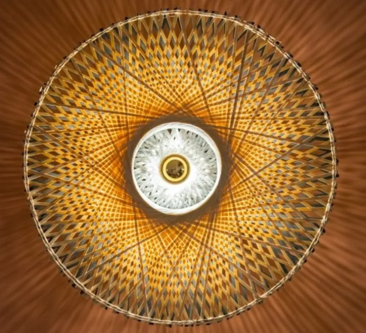 Déclinée en petit, moyen ou grand modèle, sa structure est réalisée artisanalement avec des lanières de bambou qui s’entremêlent.