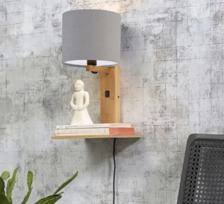 Cette applique murale Andes possède une base en bambou ainsi qu’un abat-jour en lin éco-responsable gris clair. Elle possède une petite étagère, idéale pour poser des livres. Cette applique est parfaite dans votre chambre à coucher, comme lampe de chevet, ou dans votre salon comme liseuse.