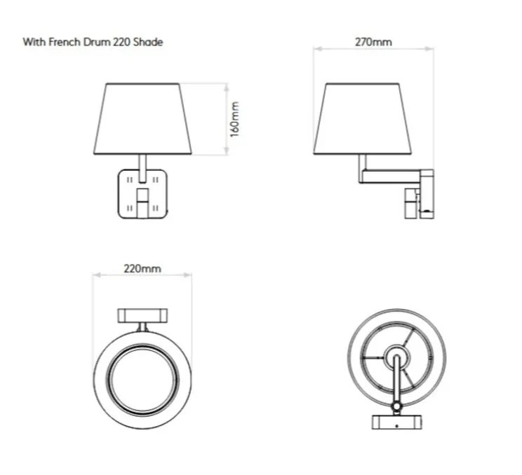 Ce modèle mural associe une base en métal noir mat à un abat-jour conique en tissu blanc « French Drum 220 », pour un équilibre entre fonctionnalité et sobriété, pensé pour les intérieurs contemporains.