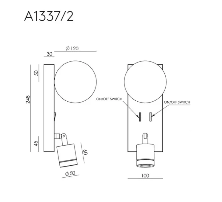 Elle est équipée d’un module LED orientable à 355° de 3W (300 lm, 2700K) pour un éclairage ciblé, et d’une ampoule G9 incluse de 5W (450 lm, 2700K) dissimulée derrière un diffuseur opalin, pour une lumière plus enveloppante. L’ensemble assure une polyvalence d’usage au quotidien, tout en maintenant un excellent confort visuel. Montage en saillie.