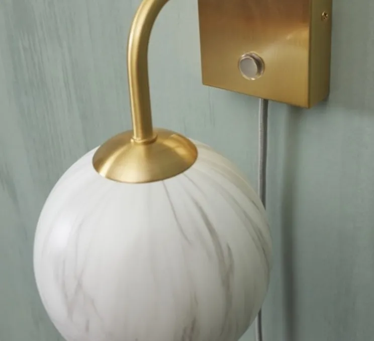 Cette jolie applique composée d’une sphère en verre à la finition en marbre blanc ainsi que d’une base en laiton, habille votre intérieur avec élégance.