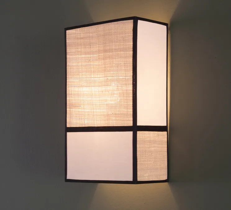 Mixant le coton et la rabane, la petite applique Céleste joue avec les contrastes. Une lumière douce et délicate est diffusée à travers ces matières naturelles. Sa ganse de coton noire dessine des lignes géométriques aux airs d’architecture nippone, qui soulignent l’ensemble.