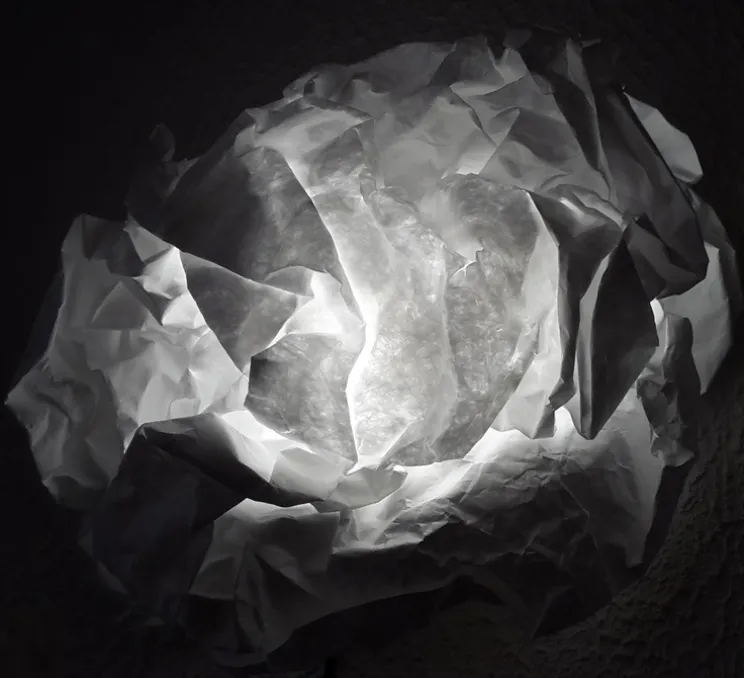 Ce luminaire peut être froissé à l’infini et garder sa nouvelle forme grâce au matériau à mémoire de forme qui la compose.
