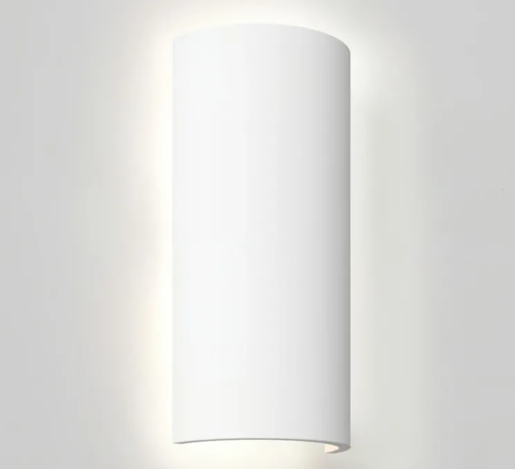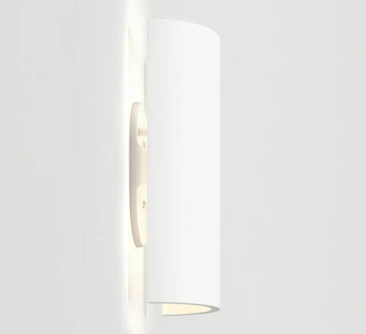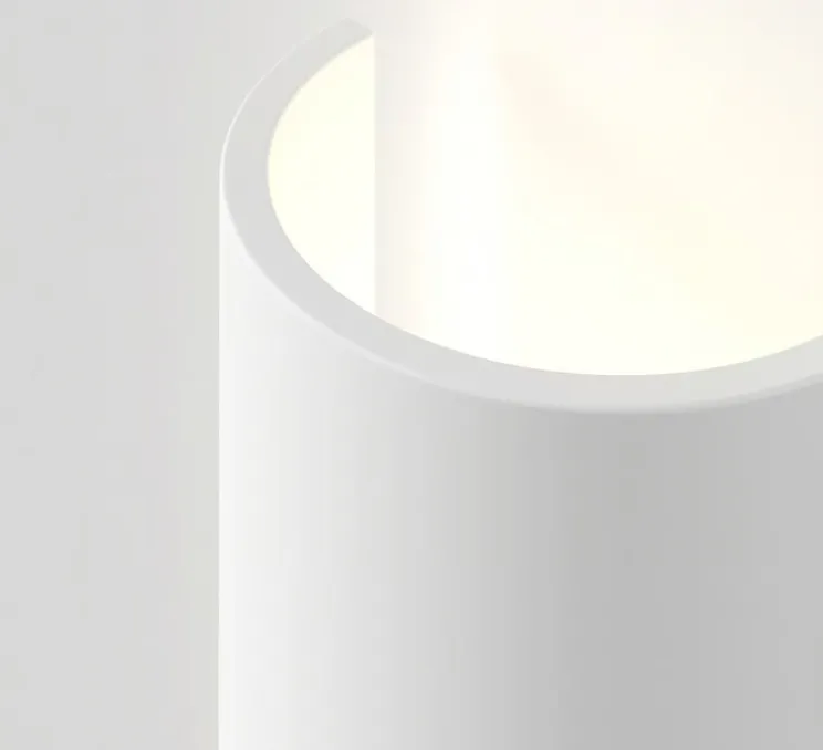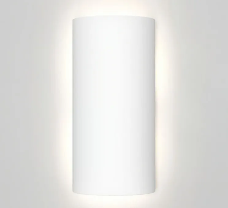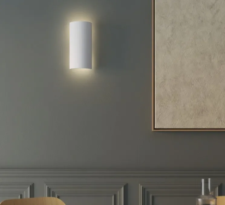 Son design cylindrique crée l’illusion d’un abat-jour flottant, projetant une lumière indirecte et douce sur le mur. Grâce à sa surface en plâtre prêt à peindre, Comino 155 peut être personnalisée selon les teintes du mur ou les choix décoratifs de l’espace. Elle trouve naturellement sa place dans un couloir, une entrée ou un espace de vie, en apportant une lumière d’ambiance discrète et graphique.