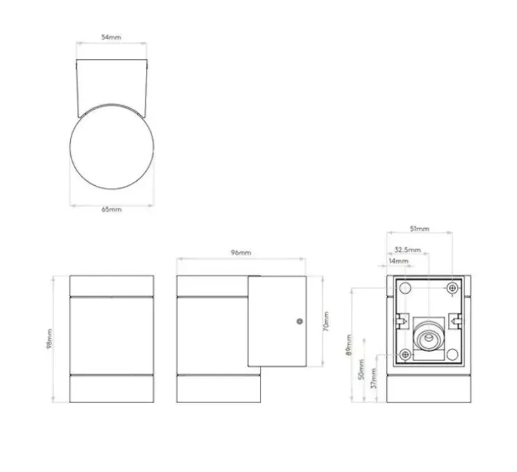 Elle mesure 9,8 cm de hauteur, 6,5 cm de longueur et 9,6 cm de profondeur. L’ampoule LED GU10 d’une puissance maximale de 6W n’est pas fournie mais nécessaire au bon fonctionnement de votre luminaire. Ne possède pas d’interrupteur. Compatible avec les accessoires Casambi et l’option Smart Lighting. Driver non requis. Dimmable. Montage mural vertical uniquement.
