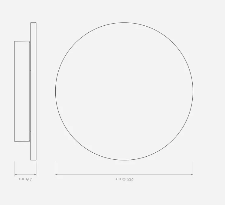 Eclipse Round 250 Led mesure 25 cm de diamètre et 3,9 cm de profondeur. Le module Led intégré a une puissance de 9,4W et diffuse 386 lumens avec une colorimétrie de 2700K. Ce luminaire n’est pas variable mais est compatible avec l’option « Smart Lighting » grâce aux accessoires Casambi. Driver non requis. Possède un IRC de 80. Montage mural. Possède un IRC de 80 promettant un rendu qualitatif des couleurs.