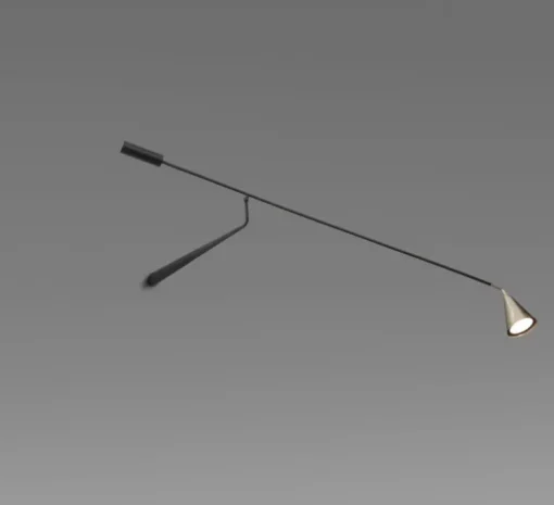 Avec sa finition en noir mat et son diffuseur conique revisité en laiton brossé, cette applique au design architectural affirme une silhouette longiligne sobre et graphique. L’équilibre visuel est renforcé par l’intégration d’une tige articulée à contrepoids, qui offre une liberté d’ajustement et une présence décorative subtile. Elle s’adapte avec aisance aux environnements résidentiels ou professionnels, du salon à l’espace d’accueil.