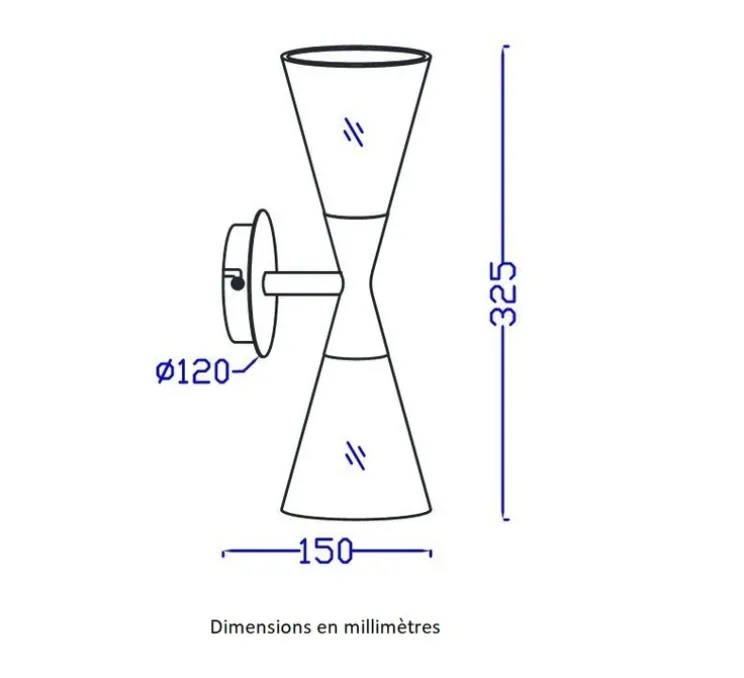 Cette applique, à l’éclairage bi-directionnel, permet de créer une ambiance chaleureuse à votre intérieur. Au design simple et épuré grâce à ses deux abat-jour de forme conique, le luminaire s’adapte parfaitement à tout type de décoration.