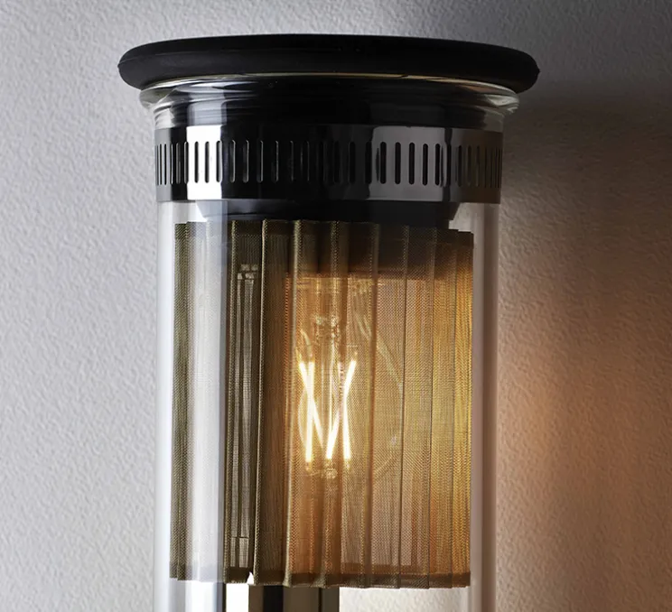 In The Tube, comme son nom l’indique, prend la forme d’un long tube, composé d’un abat-jour en verre, contenant un réflecteur et des mailles métalliques, avec à chaque extrémité un bouchon en silicone noir. Intemporel et durable, l’applique In The Tube s’intègre aussi bien dans des intérieurs industriels que classiques, que ce soit dans une pièce de vie, une chambre ou un couloir.