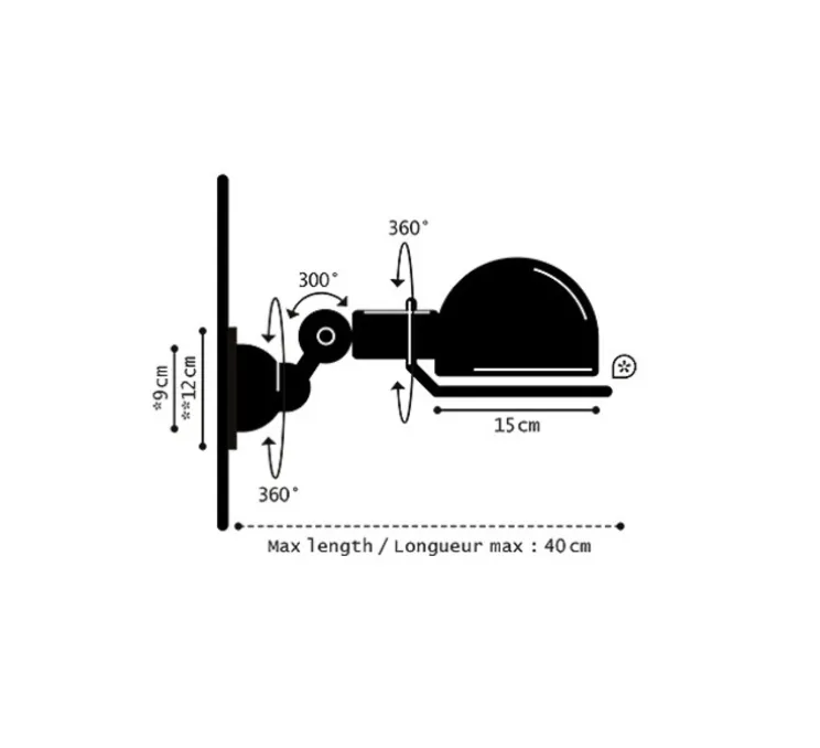 L’applique offre une grande adaptabilité. Très maniable et orientable grâce à ses trois articulations sans câble, elle est également très robuste de par son armature en acier et fonte d’aluminium. Les matériaux de cette lampe ne sont pas sans lui rappeler sa première fonction où elle était dédiée à l’éclairage des ateliers et usines, Aujourd’hui, bien loin du monde de l’industrie, c’est un luminaire décoratif au look vintage et rétro.
