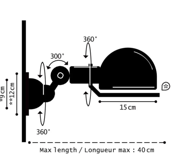 L’ampoule E27, max 60W, n’est pas fournie avec cette lampe Jieldé.