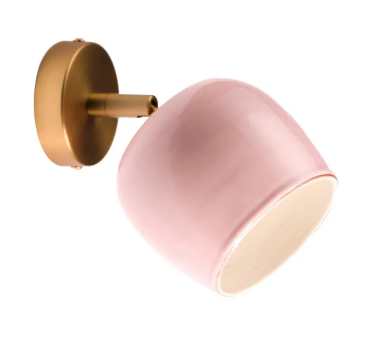 Découvrez l’applique en céramique Marcel, abat-jour rose et bras cuivre imaginée par la maison française Nexel.