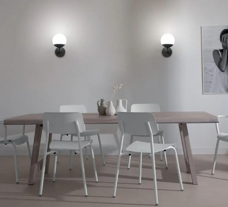 Tristan Lohner ajoute à son arc une applique murale connectable à fixer sur les murs. Celle-ci peut être utilisée comme un luminaire traditionnel ou se commande à distance par interrupteur connecté Ludo ou par Bluetooth en téléchargeant l’application « Fermob Lighting » sur smartphone. Cette applique connectée propose 2 scénarios d’éclairage du blanc froid (6000°k) au blanc chaud (2700°k) dont l’intensité peut être réglée au pourcentage près, grâce à l’application ou l’interrupteur connecté.