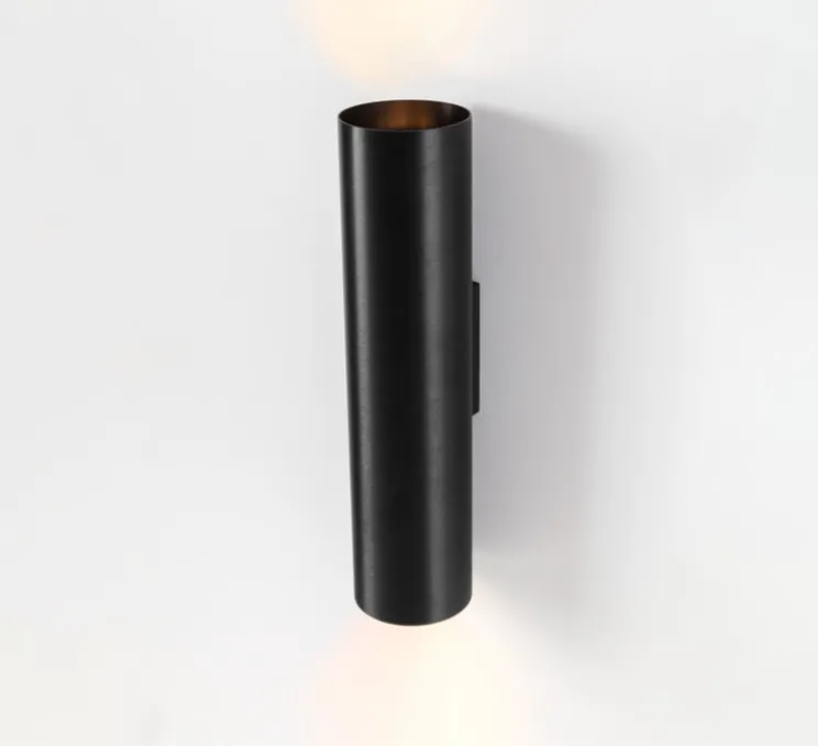 L’applique Nude Up/Down 70 se compose d’un cylindre fin et élégant de couleur noire, mesurant 7 cm de diamètre pour 28,7 cm de hauteur. Ses lignes épurées et son design cylindrique permettent de mettre en valeur l’architecture de l’espace tout en offrant une lumière indirecte et directe. Que ce soit pour éclairer un salon, un hall d’entrée ou une salle de bain, elle s’intègre parfaitement dans des environnements contemporains. L’éclairage vers le haut et le bas, combiné à son design discret, crée une atmosphère lumineuse agréable et peut être ajusté pour accentuer les détails architecturaux de la pièce.