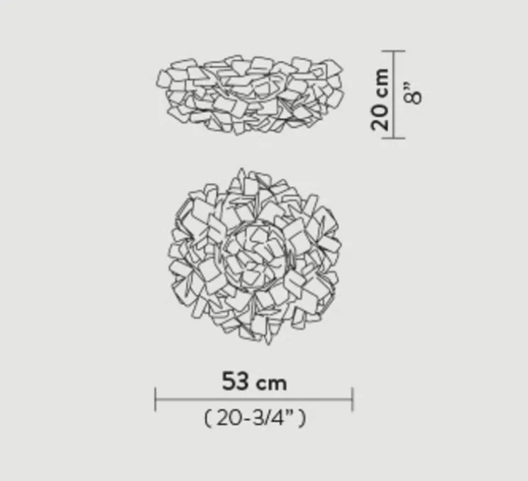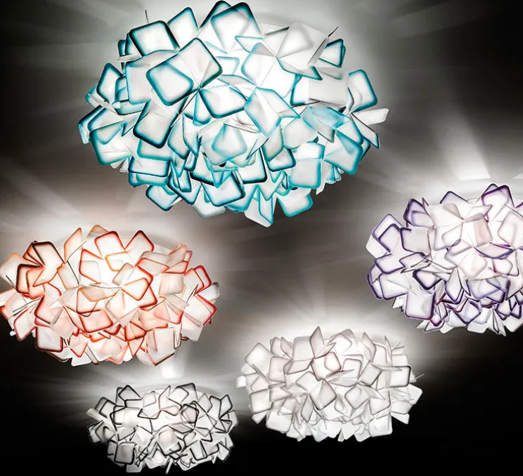 Clizia M reprend les formes de la nature : c’est un nuage qui capture la lumière du soleil aux premières heures du jour et qui se charge de reflets chatoyants, c’est la cime d’un arbre à travers laquelle filtre la lune en créant des jeux d’ombres. Clizia donne à votre environnement la lueur romantique des premières heures de l’aube. Avec sa forme peu commune Clizia s’intègre dans une chambre, un salon ou un bureau.