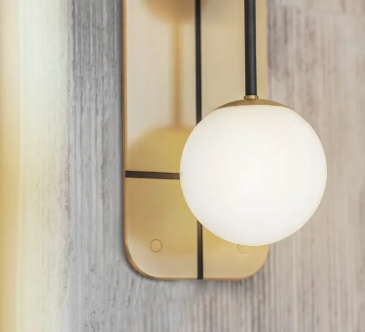 Cette applique très graphique est conçue pour toutes les pièces de la maison. Ses formes géométriques et ses matières nobles donnent un rendu des plus chics.