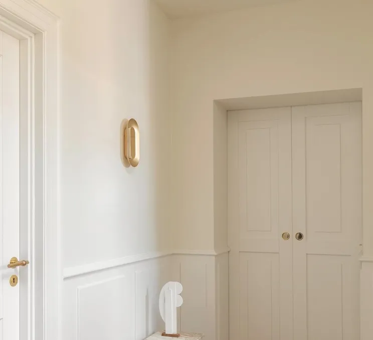 L’effet miroir brillant crée de subtils reflets et fait office d’abat-jour pour le module LED intégré, diffusant une lumière discrète et indirecte. Utilisez Sasi Small comme une lampe murale décorative dans le salon, l’escalier et le hall.