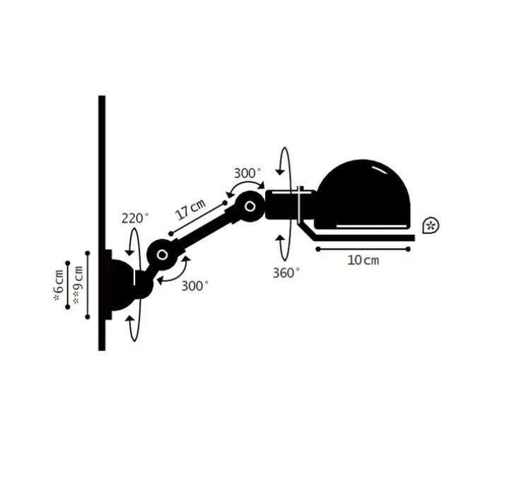 L’ampoule E14 n’est pas fournie avec cette applique Jieldé. Cette applique existe également avec la version interrupteur sur demande.