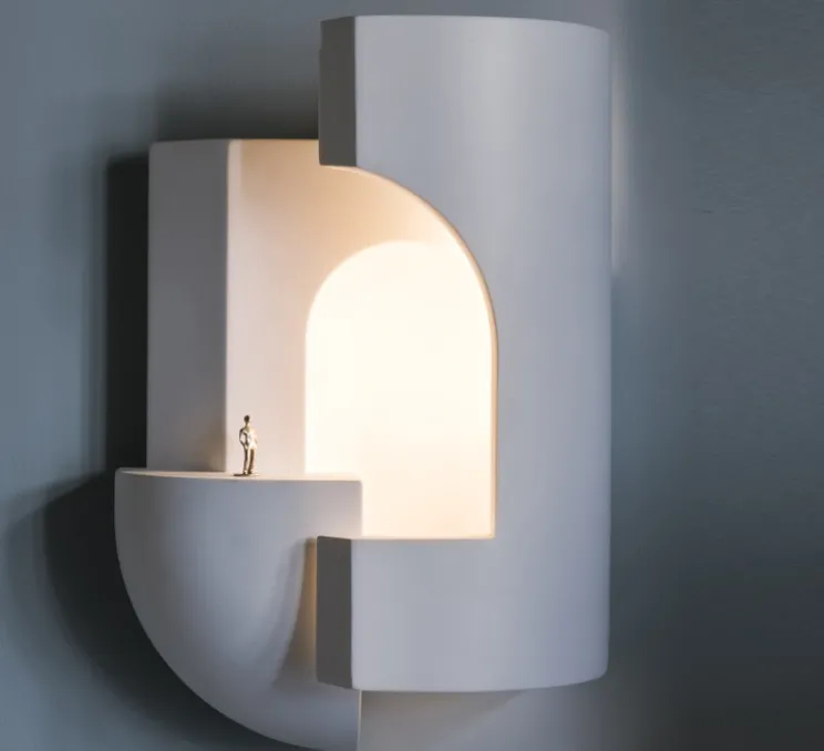 D’origine libanaise, le designer nous dresse via ces 6 luminaires la paysage morcelé de son enfance. Faites de plâtre d’un blanc pur, ces appliques sont toutes sculptées de manière différentes. Toutes en courbes ou plus anguleuses, chaque luminaire est pensé comme une ruelle que des rayons lumineux viendraient éclairer au crépuscule. La collection SOUL est un ensemble de sculptures de contemplation, rendu vivant grâce à un petit personnage métallique à positionner sur l’applique.