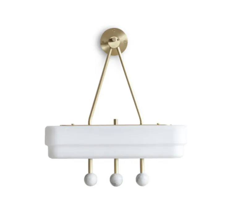 Née d’un savoir-faire d’excellence, Spate est principalement faite de laiton, de verre opalin avec du marbre « carrara » : un joli marbre blanc !
