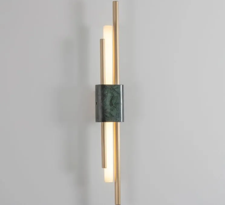 L’applique murale Tanto Wall Light – Large est une pièce d’exception qui allie élégance et modernité. Conçue en laiton, verre opale et marbre vert du Guatemala, elle séduit par son design épuré et raffiné. Mince mais dynamique, cette applique se compose de deux barres asymétriques en laiton encadrant un diffuseur cylindrique en verre opale, le tout sublimé par une façade en marbre, apportant une touche de luxe à votre intérieur.