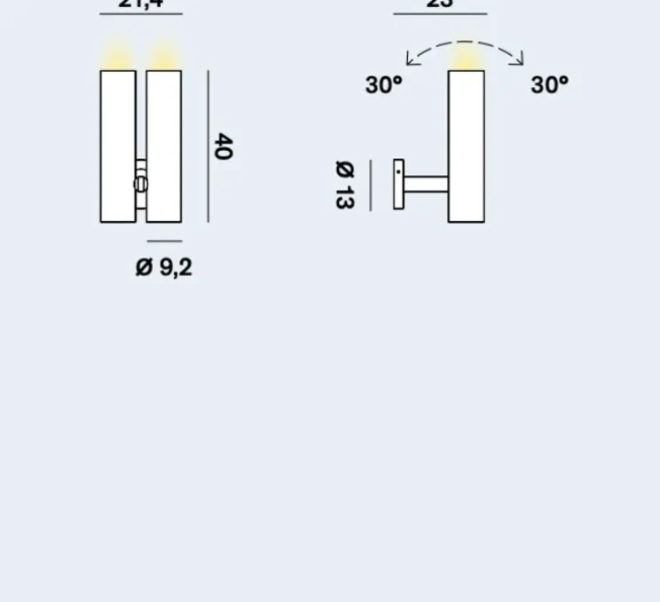 Cette applique se compose de deux diffuseurs qui émettent une lumière indirecte et diffuse.