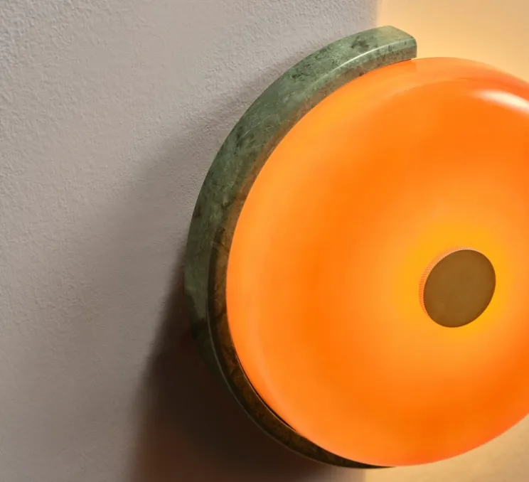 L’applique murale Trip diffuse une lumière douce et chaleureuse, créant une atmosphère apaisante. Sa forme sculpturale, composée d’une demi-lune en marbre et d’un verre brillant, confère à cette lampe un aspect résolument exclusif.