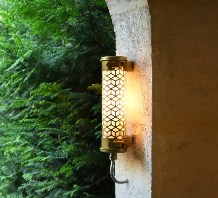 Sa structure tubulaire plus industrielle offre un contraste saisissant avec l’élégance du laiton doré. La lumière se disperse au travers des trous de la grille pour une diffusion toute en douceur, qui laisse resplendir l’applique. Grâce à son IP66, ce luminaire convient aussi bien en intérieur qu’en extérieur. Son style moderne et chic est idéal pour illuminer une tête de lit, offrir une ambiance golden hour à votre couloir et éclairer vos fins de soirée en terrasse.