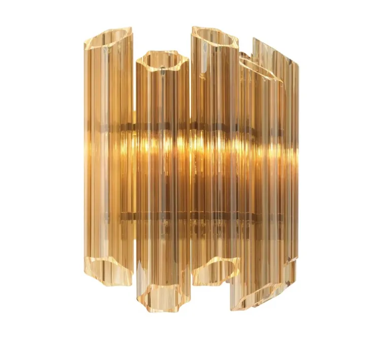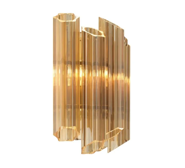 Cette applique en verre doré strié et biseauté apporte grandeur et glamour à votre intérieur.