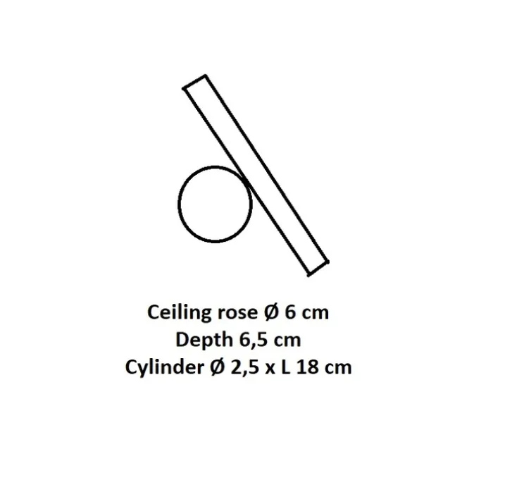 La base de l’applique murale ou plafonnier mesure 6cm de diamètre. Le tube d’éclairage mesure 2,5cm de diamètre et 18cm de longueur. La profondeur totale est de 10,5cm.