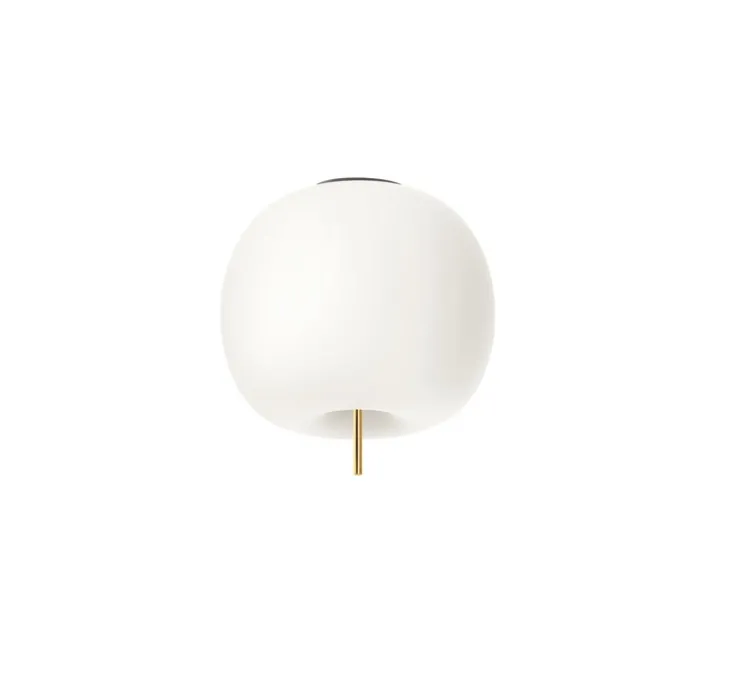 Jeu d’opposé, équilibres inattendus : des courbes souples et naturelles pour le diffuseur en verre et une tige essentielle en métal qui le traverse composent ce luminaire iconique. Cette rencontre de formes s’adapte avec légèreté sur vos murs et plafonds, avec un effet de lumière chaude et diffuse. Sa simplicité fait la beauté de son design.
