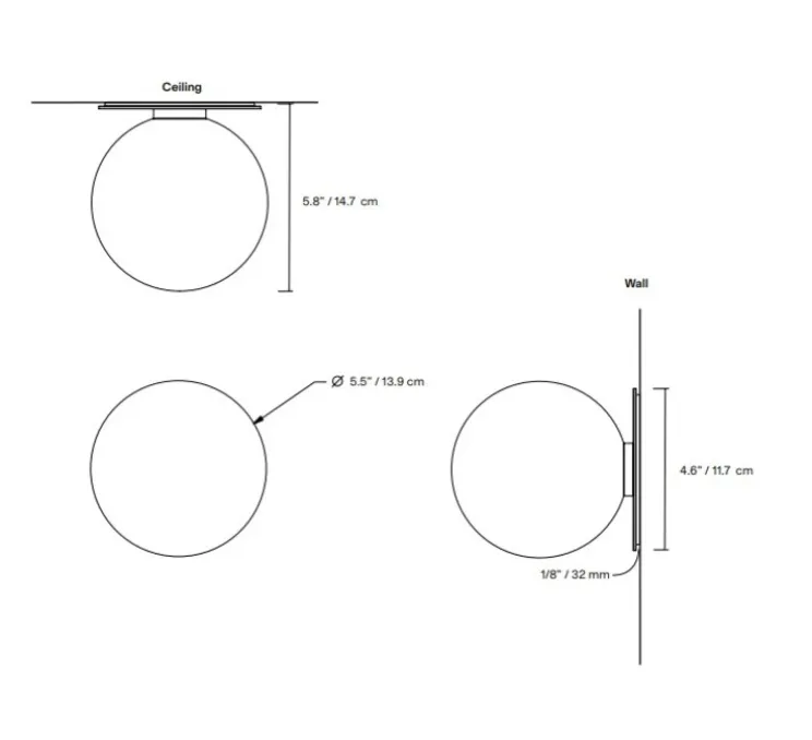 Le luminaire mesure 13,9 cm pour 14,7 cm de hauteur, avec une rosace de 11,7 cm. Sa source lumineuse de 2700K est incluse.