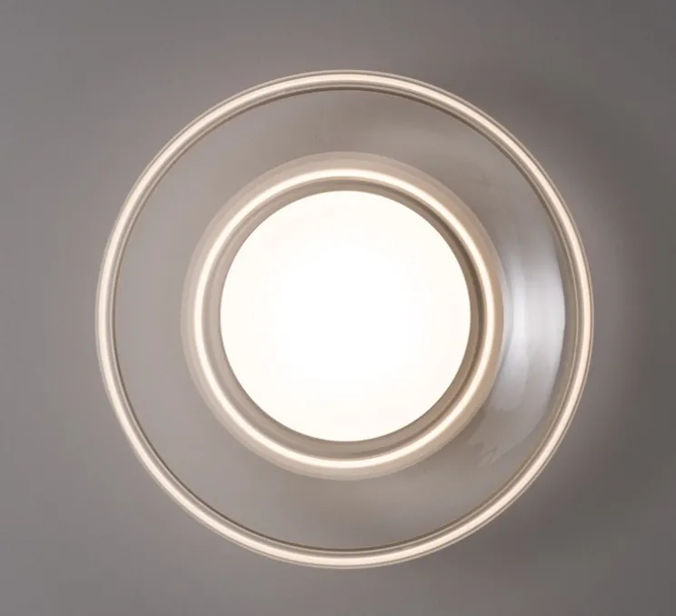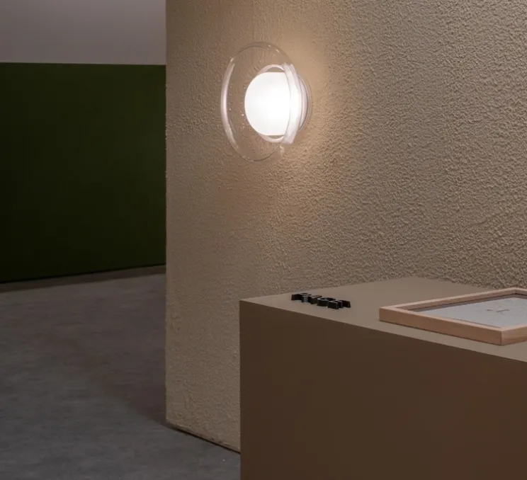 Cette version murale ou plafond est pensée pour les espaces intérieurs et repose sur une esthétique circulaire en verre transparent, associée à une base en aluminium. Déclinée de la suspension modulable Pace, cette pièce distille la forme originelle de la série dans un volume unique, tout en conservant son langage formel rythmé.