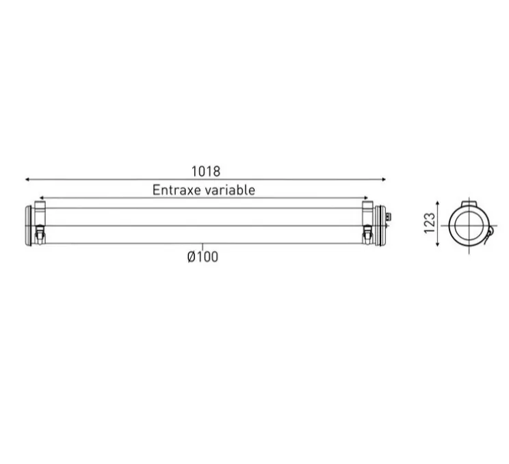 Le Pissarro 100 est un luminaire tubulaire conçu pour l’éclairage général, combinant durabilité et efficacité lumineuse. Sa vasque en polycarbonate/PMMA résiste aux UV, permettant une installation aussi bien en intérieur qu’en extérieur.