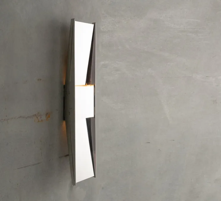 Découpées à partir de tracés précis pour créer une forme parfaitement rectiligne et élancée, cette applique est appelée Vecteur pour son apparence géométrique qui oriente la lumière sur ses surfaces intérieures inclinées tout en offrant un effet de dégradé.