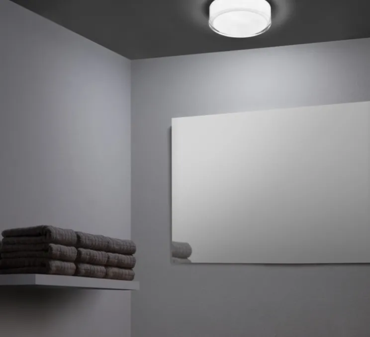 Cette applique/plafonnier en verre pressé spécial à double épaisseur est idéal pour éclairer vos espaces de bain grâce à son IP44.