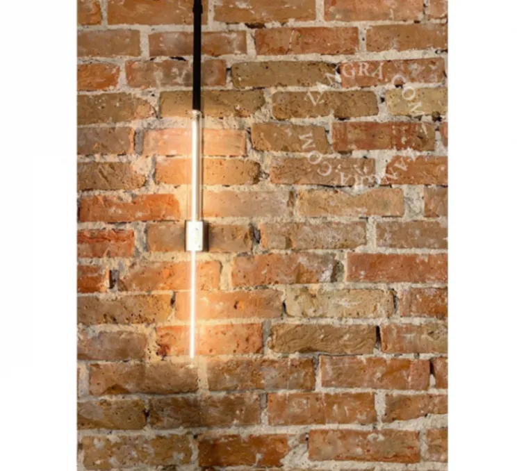 Ce tube lumineux au style industriel est composé d’une source lumineuse en verre longiligne 30 cm de long (ou de haut selon si vous l’installez à la verticale ou à l’horizontale) et de 3cm de diamètre en verre et d’un socle en métal chromé (70 x 40 x 46mm).