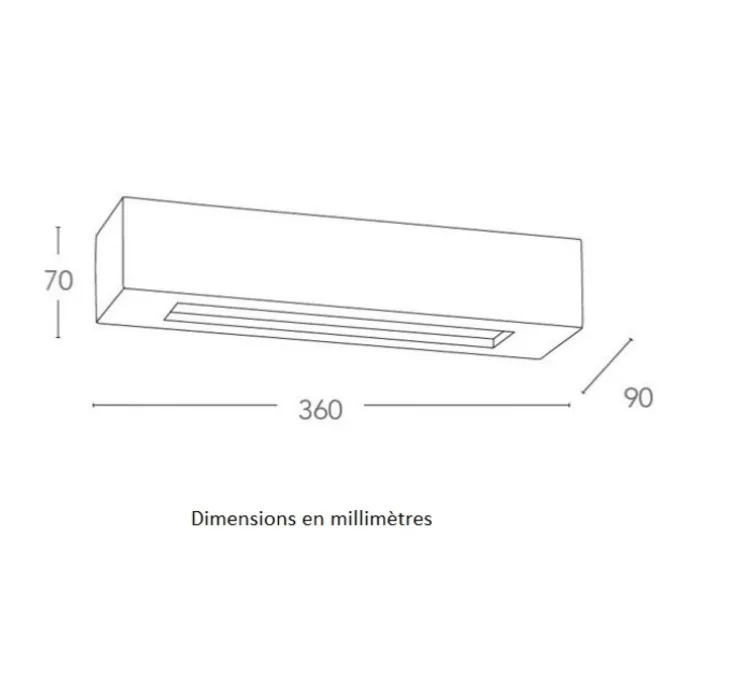 L’applique Claire M se caractérise par un rectangle en plâtre d’une hauteur de 7 cm et d’une longueur de 36 cm. Elle garantit un effet sobre et élégant réussi. L’applique est composée d’une sortie lumineuse, qui vous permet de créer un bel éclairage indirect, à la fois par le haut et par le bas.