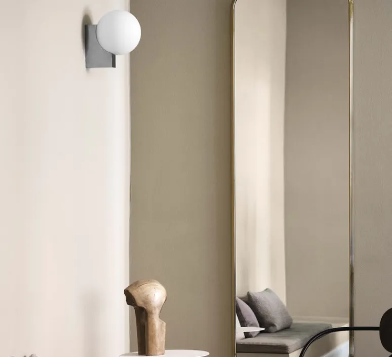 On trouve sur cet éclairage un abat-jour rond en verre opale qui rappelle la lune. Que la lune soit pleine ou non, l’intention est d’apprécier le design et l’ambiance qu’il insuffle.