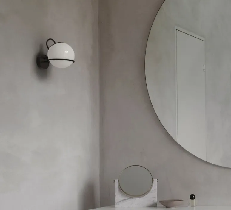 Avec son verre oplalin sphérique avec une structure noire, cette applique fait partie de la collection iconique de Gino Sarfatti. Ce luminaire a été conçu initialement en 1959 et a été réédité en 2018 !